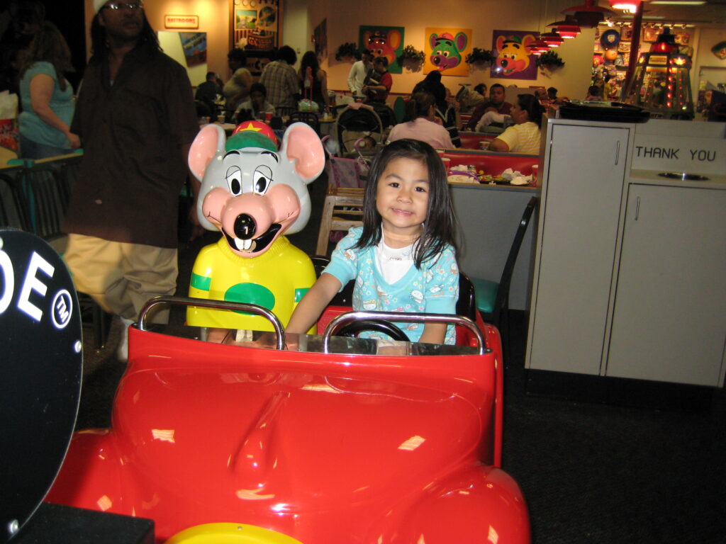 After Anthony spent the entire day playing Mario cart on the Wii (when I say all day… I mean all day. He got up at 6 am to buy the newly released game and didn’t leave the couch until 6 pm), he felt guilty for neglecting JoJo (I may have had something to do with him realizing his poor parenting) so we spent the evening at Chuck E. Cheese’s.