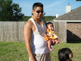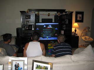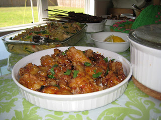 Day-o-fun. The first is a picture of me making my own sushi… my first time. The next are pictures of the food. On the menu: Pancit, Kalua Pork, Asian chicken wings, Red Rice, BBQ on a stick, California Rolls, Spinach Salad, Rolls, Chicken Keleguin, Macaroni Salad, Tempura Shrip, Lumpia, and the desserts that I made yesterday. We played volleyball and ended the night with a little Wii and Scattergories. All in all the food was a big hit and everyone had a good time. Still have plenty of left overs… come by and help us finish them off.