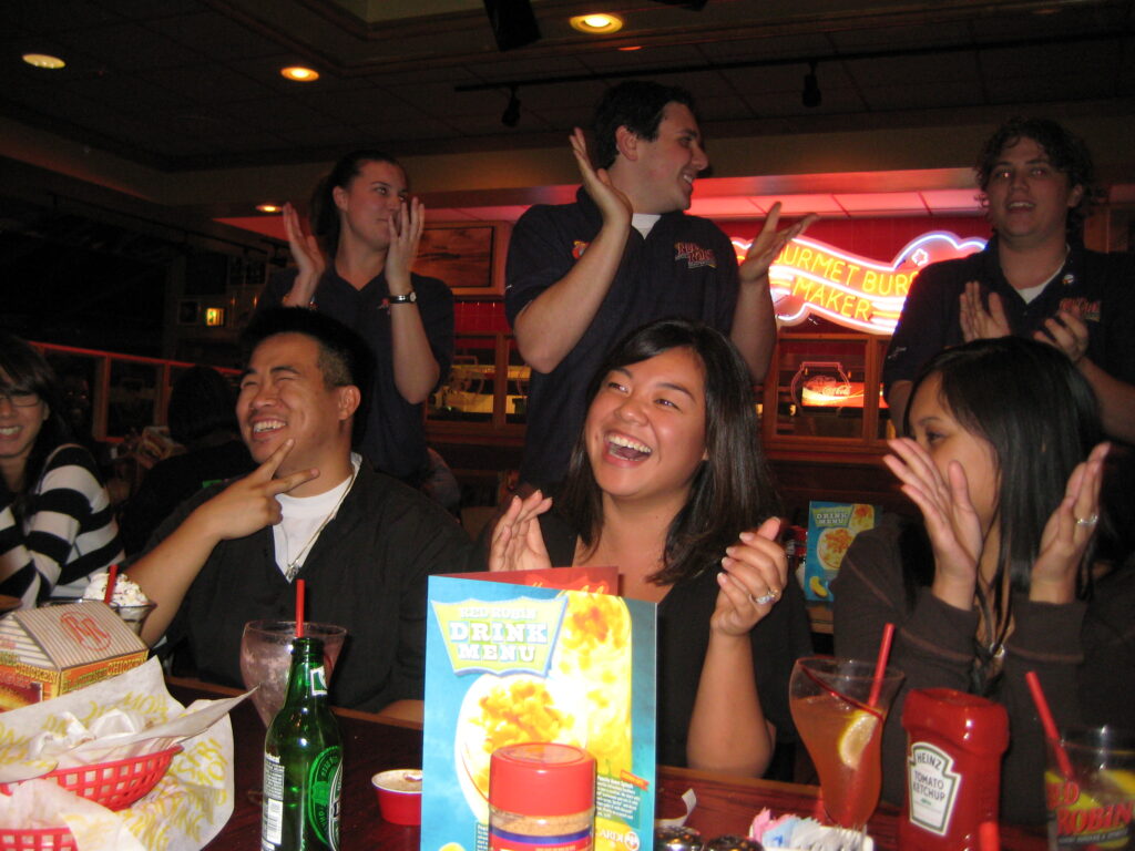 Dinner at Red Robin. We got the waiters to sing the traditional happy birthday song. It’s always fun to embarrass your friends.