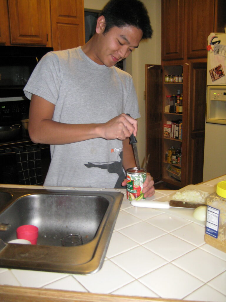 Aprille: “You need to cut up the canned tomatoes.”