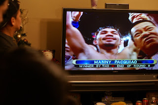 Last night, our family got together to cheer on the Thrilla from Manila, Manny Pacquiao. It was a great fight and we we made it a little more interesting by having a friendly bet going. We all chipped in $5 and picked random numbers, 1-13. The person holding the number in which the fight ended won the pool (yes I know there are only 12 rounds but 13 was reserved for a draw decision). I felt pretty lucky with number 7, but as we all know they declared Manny the winner by TKO after the end of the 8th round.