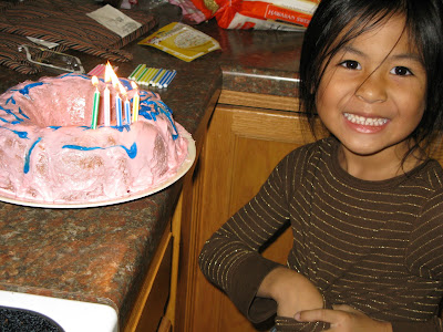 Jocelyn and Daddy baked a cake and she got to decorate it with her favorite colors.