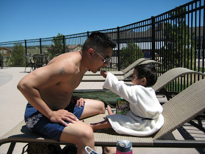 Between Anthony’s work and both of us working on our Masters, we have had very little time to enjoy our weekends. However, this past Sunday we spent the morning at our neighborhood pool. It was nice to finally have time away from studying and paper writing to relax and play. The community center in our development has everything. Gym, tennis courts, playgrounds, pool and splash area for the kids.