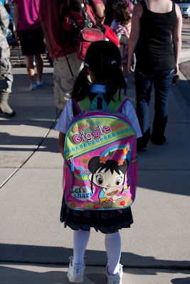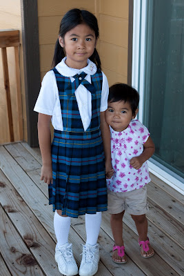 I have a few more events that I need to post about, but I just couldn’t wait to post about this one… It’s Jocelyn’s first day of KINDERGARTEN!! I think I was a little more anxious than she was. I was up late last night making sure she had her snacks and lunch money neatly tucked away in her backpack, which I labeled. I also scrubbed her sneakers and hand washed the laces. The whole family dropped her off at her new school and classroom. I could feel the tears welling up, but was able to hold them back…I didn’t want to be THAT mom.