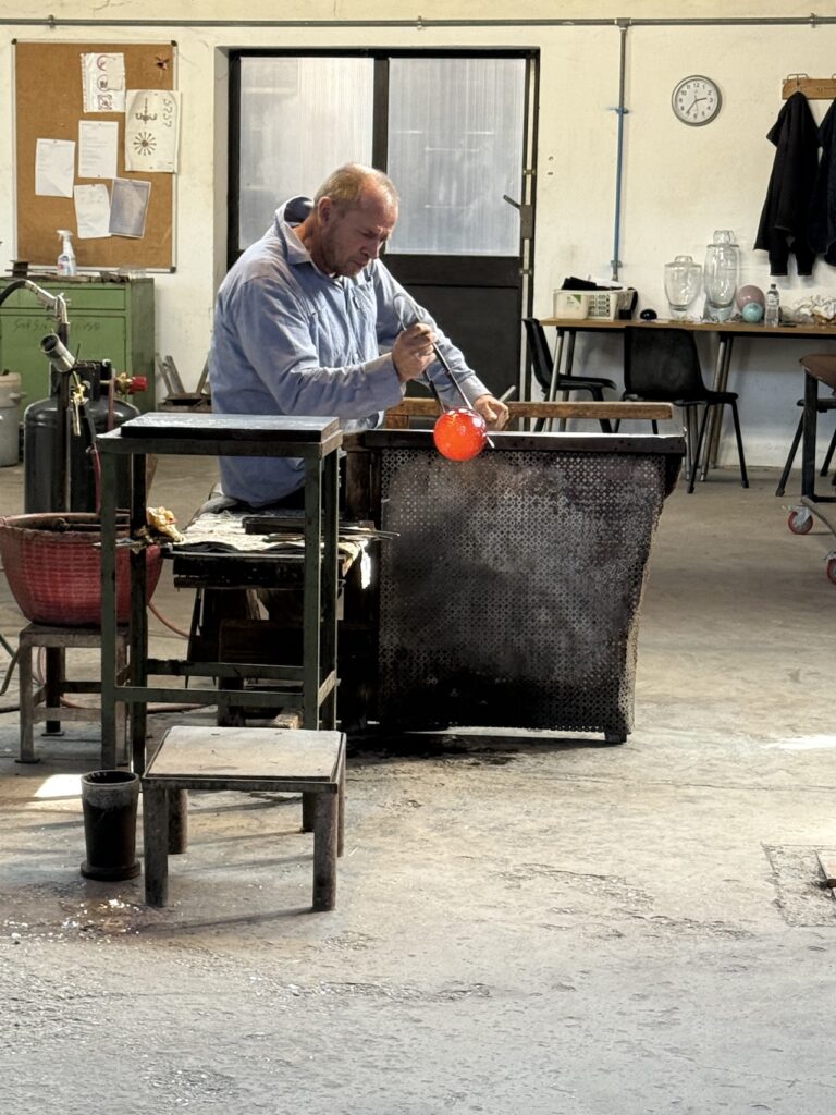 Learning all about glass making from this talented master.