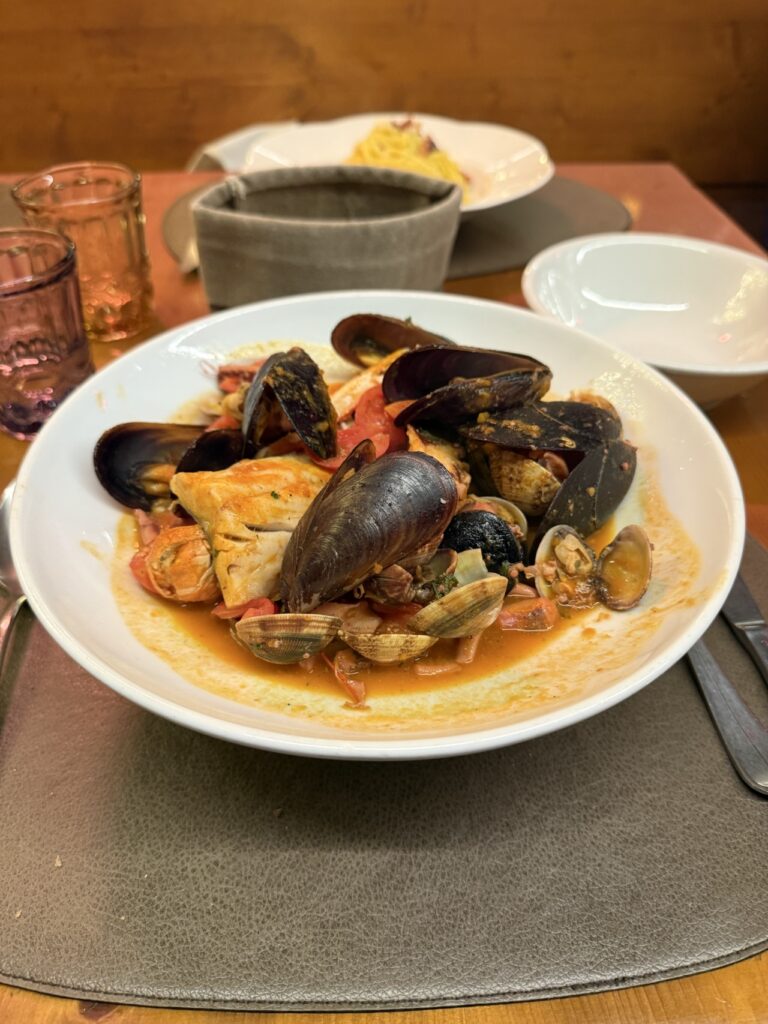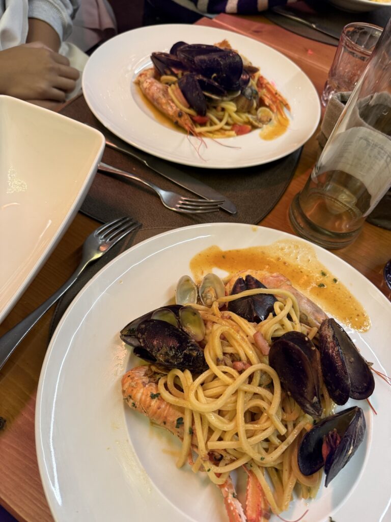 Dinner – you’ll quickly see the theme of all our meals in Italy, seafood!